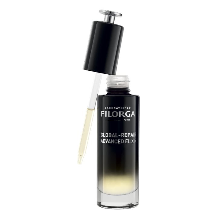 Filorga Global Repair Advanced Elixir është një serum intensiv anti-plakje me teksturë të lehtë vajore, i cili kombinon efikasitetin e përbërësve aktivë të avancuar kundër plakjes me fuqinë ushqyese të vajrave të çmuar për të korrigjuar 10 shenjat e plakjes. Ky eliksir është i pasur me vajra të pasur me omega 3, 6 dhe 9, si dhe me përbërës të tillë si ekstrakti i Trëndafilit të Damaskut dhe ekstrakti i Tabebuia Impetiginosa (njohur si “Tree of Life”), të cilët ndihmojnë në rigjenerimin e lëkurës dhe përmirësimin e elasticitetit dhe densitetit të saj.
