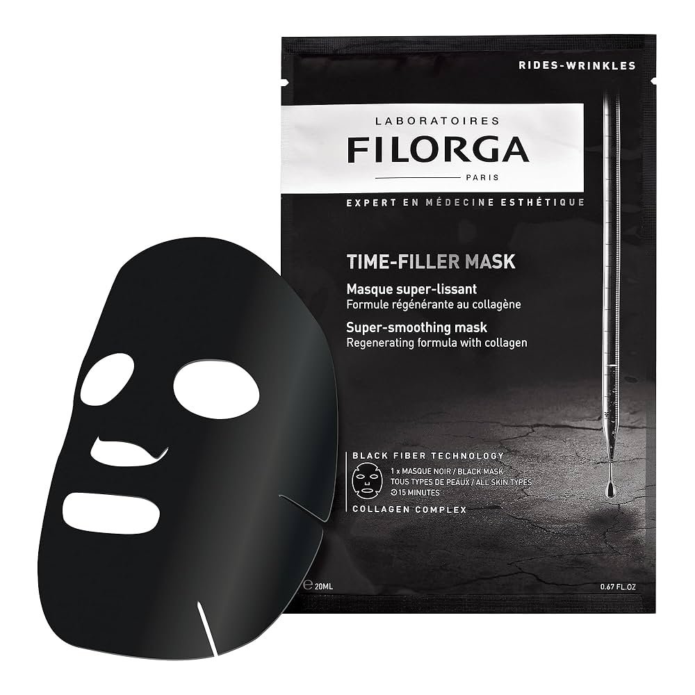 Filorga Time‑Filler Mask është një maskë-fletë anti‑plakje me efekt të menjëhershëm “second-skin” e ngjyrosur në të zezë, e ngopur me serum anti-rrudhë që sjell: