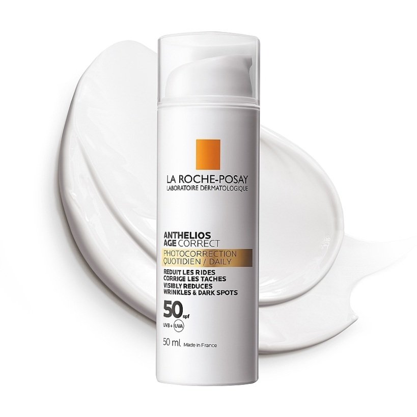 La Roche-Posay Anthelios UVMune Age Correct SPF 50 – 50 ml është një krem dielli me mbrojtje shumë të lartë kundër rrezeve UVA dhe UVB. Përmban përbërës aktivë si acid hialuronik, niacinamide, PHE-Resorcinol dhe LHA që ndihmojnë në hidratimin, rigjenerimin, korrigjimin e njollave të errëta dhe përmirësimin e strukturës së lëkurës. Mbron lëkurën kundër plakjes, ndotjes dhe stresit oksidativ. I përshtatshëm për të gjitha tipet e lëkurës, përfshirë lëkurën e ndjeshme.