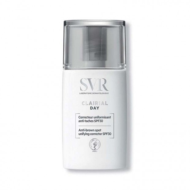 SVR Clairial Day SPF 30 është një krem ditës depigmentues me mbrojtje të mesme ndaj diellit që synon të zvogëlojë njollat e errëta, të uniformojë tonin e lëkurës dhe të parandalojë formimin e njollave të reja. I përshtatshëm për të gjitha tonet e lëkurës, madje edhe për lëkurë të ndjeshme.